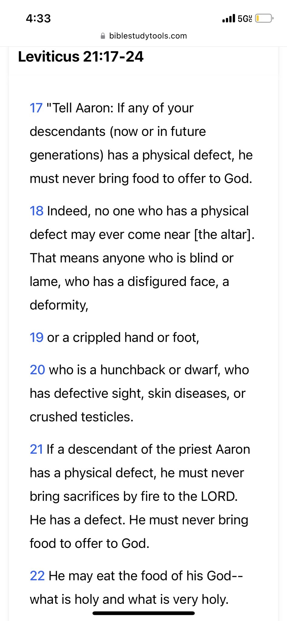 Leyes para el sacerdocio. Ellicotts Commentary for English Readers. Leviticus 2116 in all English translations.